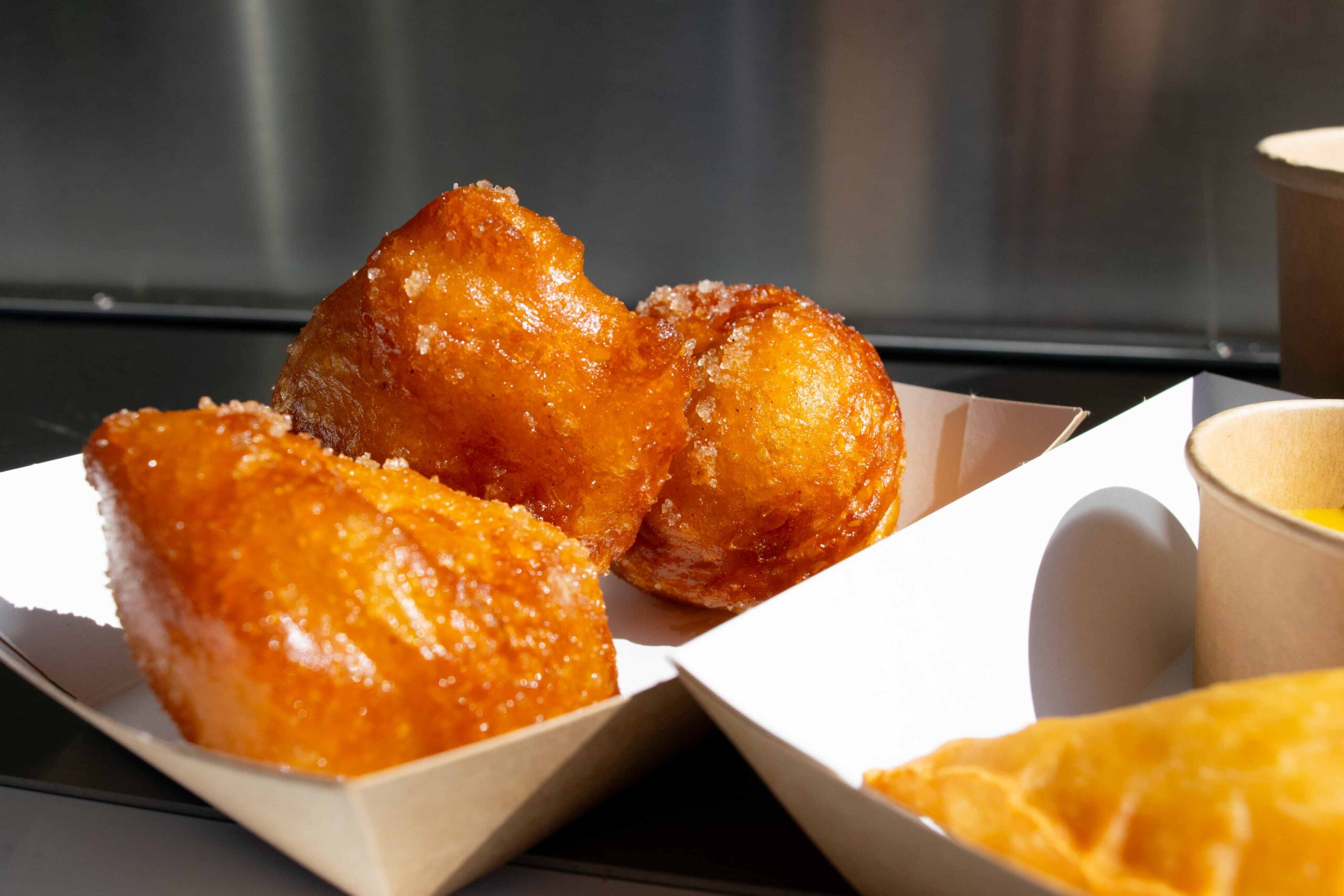 Als Beilagen gibt es Süßkartoffelpommes und frittierte Kochbananen für je 4,50€ sowie diverse Pastel-Teigtaschen für 1,50€ das Stück. Zum Abschluss warten „Puff Puff“ — fluffige Teigbällchen mit Zimt-Zucker oder Schokosauce. „Diese sind ein richtiger westafrikanischer Streetfood-Klassiker“, erklärt Grace. Die frittierten Teigbällchen erinnern an luxemburgische „Fueskichelcher“, haben aber durch Muskatnuss eine besondere Note.