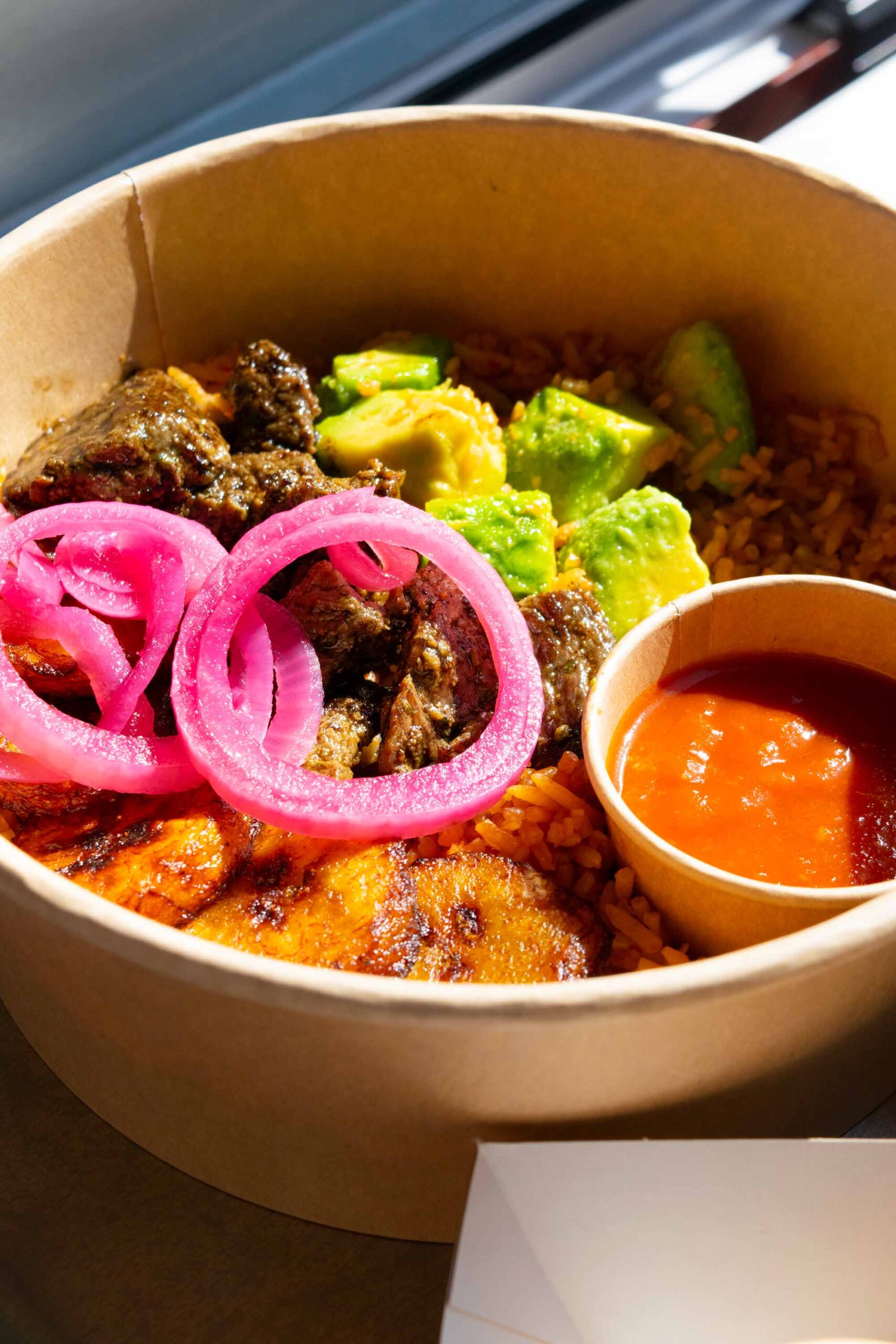 Die ursprüngliche Idee eines Restaurants wurde zugunsten eines Foodtrucks verworfen: „Wir sind flexibler und können testen, ob das Konzept funktioniert“, so Luisa. Káàbò steht für Afro-Fusion — eine moderne Interpretation westafrikanischer Küche in Form von Bowls und Burgern, basierend auf traditionellen Rezepten und monatelanger Vorbereitung. „Unser ganzes Leben ist Fusion“, beschreibt Grace die Philosophie dahinter.