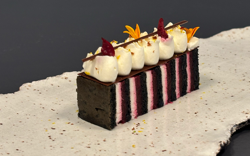 • Pauline Michelin, Chefpatissière des Restaurants Grünewald Chef’s Table, zuvor in den Sternerestaurants La Cristallerie, Place d’Armes und der Villa René Lalique im Elsass tätig. Die junge Konditorin wird ihren Kuchen „Fusion Honig/Sudachi — Reise von Luxemburg nach Osaka“ präsentieren, in dem sie die kleine japanische Zitrusfrucht Sudachi, Honig und Sake verwendet. Die Basis des Desserts besteht aus einem Baumkuchen.