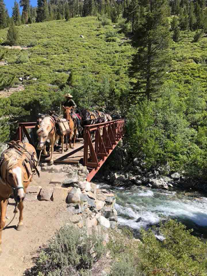 Die Muir Trail Ranch, die als „Ihr Basiscamp in der Wildnis“ beworben wird, bietet ein luxuriöses Camping- Erlebnis. Wandern, Reiten, Angeln und Nutzung der heißen Quellen werden dort angeboten. Besuchen Sie die Website, um zu reservieren, und beachten Sie bitte, dass die abgelegene Lage eine 9 km lange zusätzliche Wanderung erfordert.