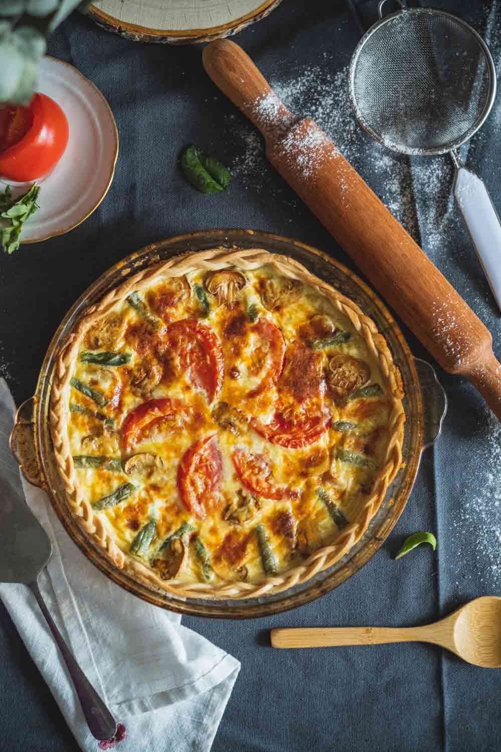 Preheat the oven to 180 °C. Line a quiche dish with the finished dough.