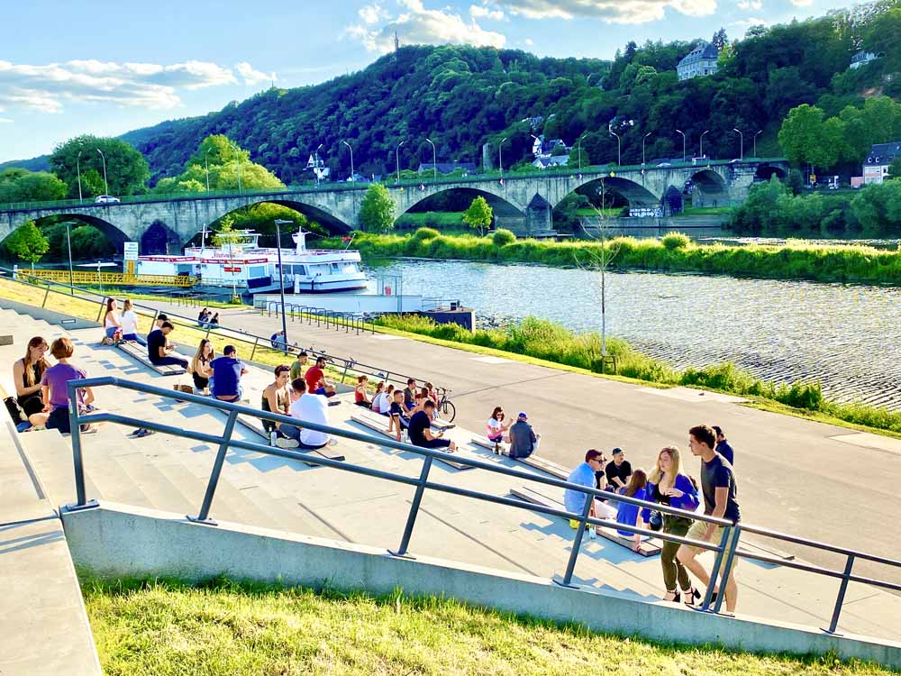 The Hauptmarkt or the Domfreihof with its terraces often distract from the path. Also eye-catching are the constantly decorated shop windows of the small boutiques in the pedestrian zone. Neustraße is considered a hidden gem here with its small shops for fashion and craftsmanship. With around 20,000 students, Trier can also be described as a young city. This can be experienced at sunset on the Moselle riverbank in Zurlauben, the meeting point for many people from Trier.