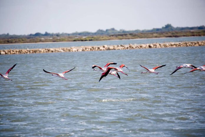 « Le sel était là avant nous les hommes » nous rappelle Luc Vernhes, saunier retraité du Groupe Salins, et consultant. « Pour extraire le sel, il faut une immense étendue de terre car entre la prise d’eau de la mer et l’extraction du sel, on doit installer une centaine de bassins (sur 50 kms). Créer de nouveaux salins aujourd’hui est pratiquement impossible par manque d’espace » précise-t-il. Aujourd’hui, les salins s’étendent sur 8000 m², aussi grand que Paris intra-muros. Sur ces terres, 40 000 flamants roses ont installé leur habitat. Vous pourrez les apercevoir au loin, la tête dans l’eau, occupés à manger les minuscules crevettes qui vivent là. Pour les plus curieux, il est d’ailleurs possible de dormir au cœur des marais dans d’anciens mas, où vivaient avant les familles de sauniers ; ils ont été réaménagés par le propriétaire des lieux. L’occasion unique de vivre au cœur des marais et d’apercevoir des vols de flamants roses, mais attention aux moustiques qui pullulent !