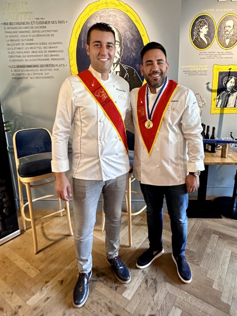 12 écharpes rouges (chefs) ont été remises, ainsi que 2 violettes (sommelier et service en salle) et 1 verte (producteur). « C’est une fierté pour moi de recevoir mon écharpe rouge. Escoffier a inventé la cuisine que l’on pratique encore aujourd »hui » nous livre le chef Frédéric Vuillemin (Becher Gare) fraîchement intronisé, aux côtés notamment d’Alessandro Vittali, notre consultant pâtisserie pour le magazine.