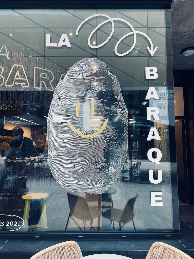 Appelé « LA BARAQUE », ce lieu va faire la part belle à la pomme de terre plongée dans de la graisse au blanc de bœuf, version 5 étoiles. Les frites artisanales se mangent accompagnées de classiques revisités comme l’américain, le thon mayo, les boulets, le vol au vent, … des garnitures habituellement inattendues dans la barquette. Pour les puristes, il est aussi possible de déguster ses frites simplement accompagnées de sauces fraîches et faites maison comme la mayonnaise, l’andalouse, la tartare, la samouraï, etc. Le tout dans des emballages, sacs et sachets biodégradables
