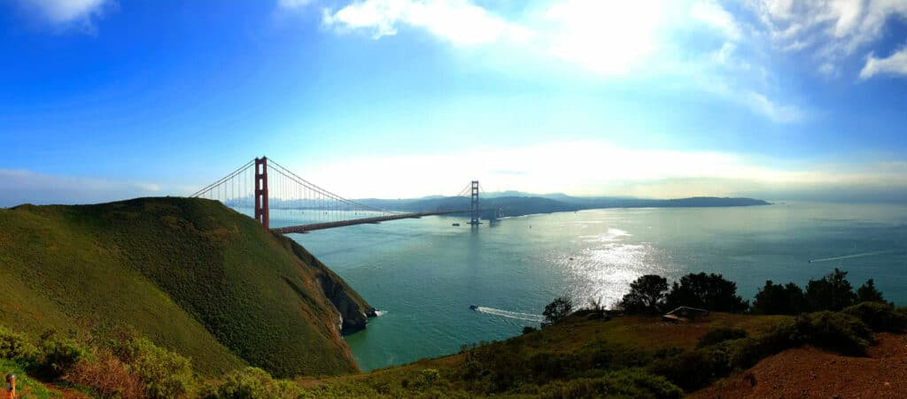 „Here comes the sun“ von den Beatles klingt aus den Boxen. Es hilft: Der Morgennebel über der San Francisco Bay lichtet sich. Zwischen den Harmonien sprudelt Tourguide Allan Graves Informationen über die Stadt hervor, in der der in Costa Rica geborene Sohn eines Kanadiers und einer Nicaraguanerin fast sein ganzes Leben verbracht hat und die er genauso liebt wie die Musik der Hippie-Ära. Eine weitere Leidenschaft sind alte VW-Bullis. Fast im Schritttempo klettert sein mit Porträts von Janis Joplin und Carlos Santana sowie einem Bild der Golden Gate Bridge verzierte Bulli den steilen Russian Hill hinauf. Durch Seitenstraßen öffnet sich der Blick auf die Bucht, im Dunst ist gar die Insel Alcatraz zu erahnen.
