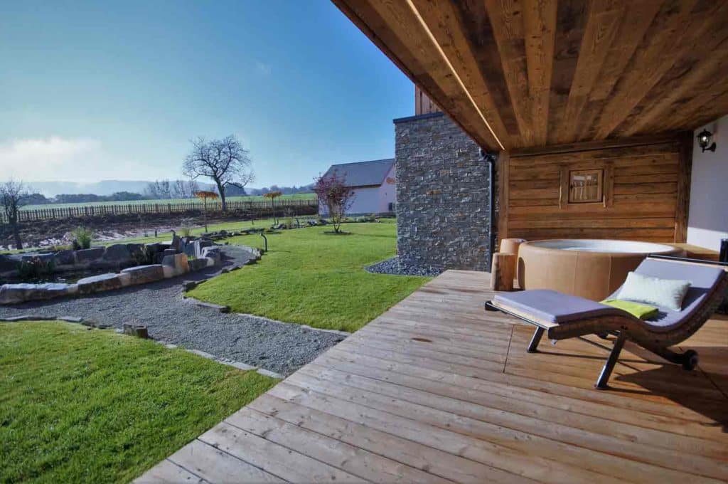Die beeindruckend konzipierten Chalets sind mit Liebe fürs Detail eingerichtet. Die Beleuchtung im Wellnessbereich und die Neigung der Lamellen-Stores sind individuell einstellbar. Der Rohbau wurde mit atmungsaktiven Blöcken hergestellt, im Wellnessbereich wurde nur Zirbenholz verwendet, die Böden der Chalets bestehen aus Travertin-Naturstein. Die Inneneinrichtung der Räume ist übrigens dem Ambiente des Restaurants „Hot Stone“ nachempfunden, das Jacques Petry in Vianden führt, gleich neben der Seilbahn, die er auch betreibt.