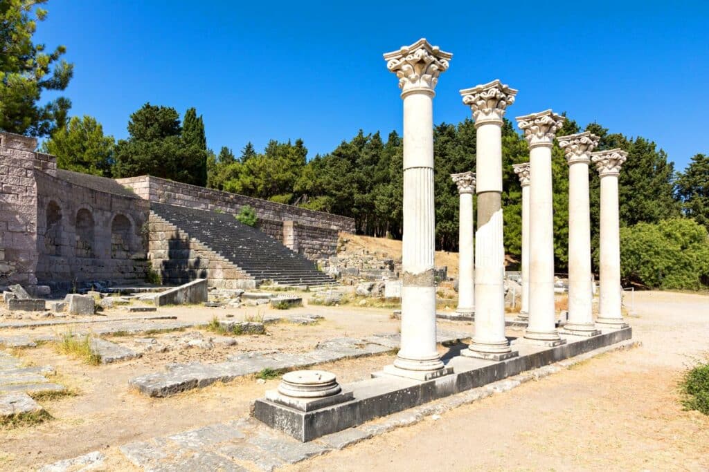 Bedeutendste Ausgrabungsstätte ist Asklepíeion. Das antike Sanatorium, das als eine der ersten Kurkliniken der Menschheit gilt, liegt rund vier Kilometer südwestlich von Kos-Stadt auf einem von Zypressen bewaldeten Hügel. Die terrassenförmige Anlage wurde 1902 vom deutschen Archäologen Rudolf Herzog entdeckt.