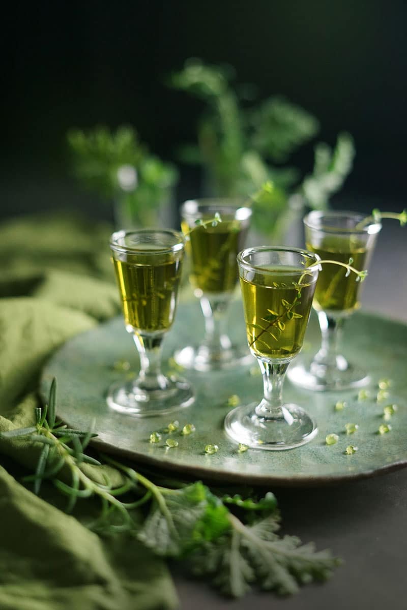 8. Serve chilled as an after-dinner digestive, or before your feast as an aperitif. This blend will change with aging so enjoy it within a few months if you'd like to preserve the flavor! It can sometimes age really nicely, though, so if you have a bit left over in the fall or winter it makes a lovely evening treat then as well.