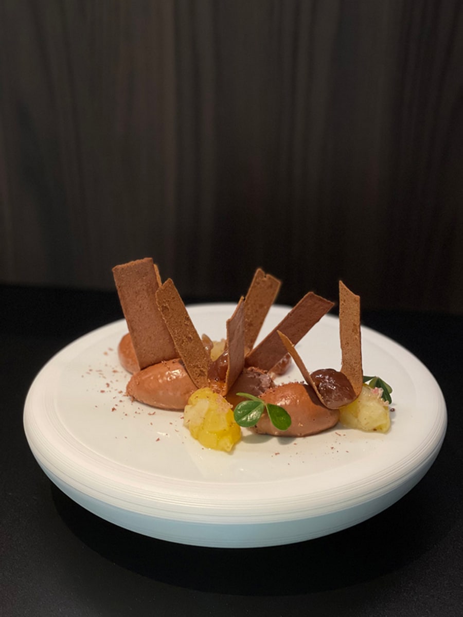 As for the desserts, the Chef has also added a number of novelties, which will delight all gourmets. Starting with an “Oriado 60%” chocolate ganache served with glazed chestnuts and a pineapple sugar loaf. Or a Pain d’Epices Maison with a crèmeux passion. Enough to make you come back several times to try them all.