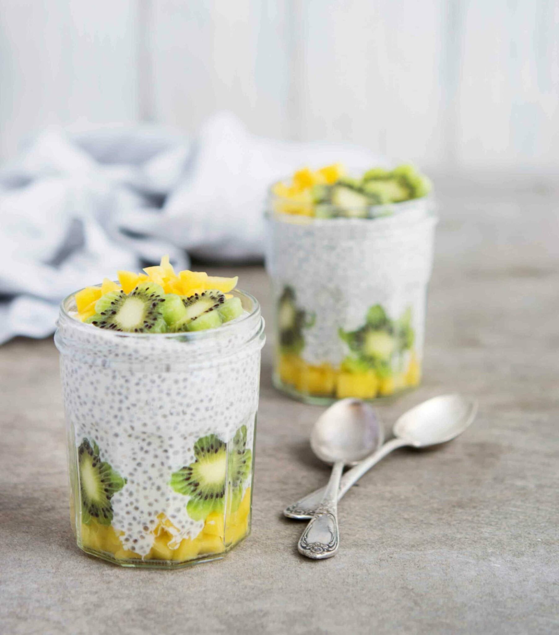 Pudding de Graines de Chia au Yaourt Grec, Kiwi & Mangue
