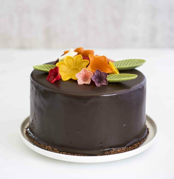 7. Couvrir le gâteau refroidi avec la crème au chocolat à  l'extérieur et le décorer selon vos souhaits.
