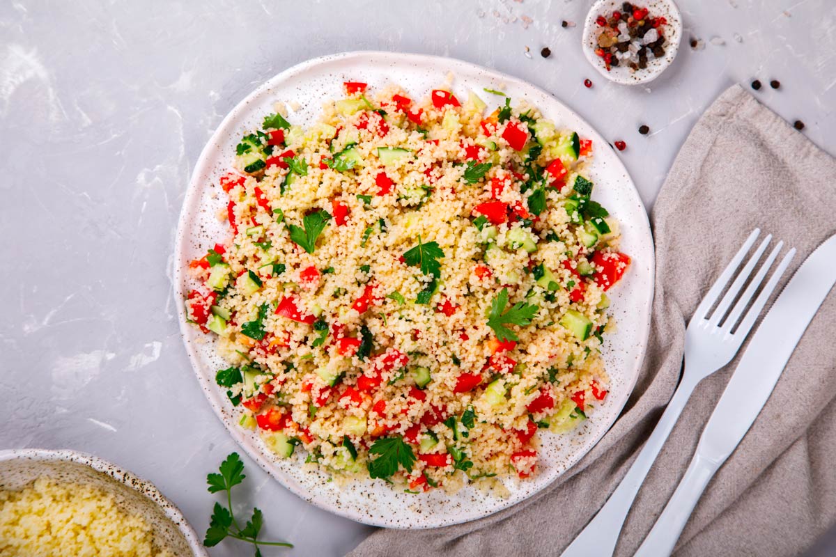 • Normalement, cette salade fraîche du Liban est préparée avec du bulgur. Mais on peut également utiliser du couscous à  la place.