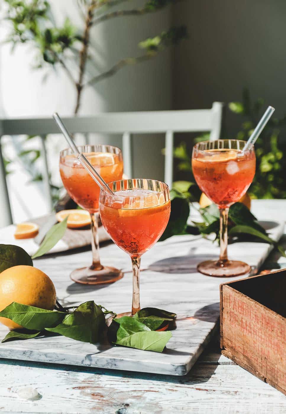 2. Den Aperol und dann den Prosecco hinein gießen.