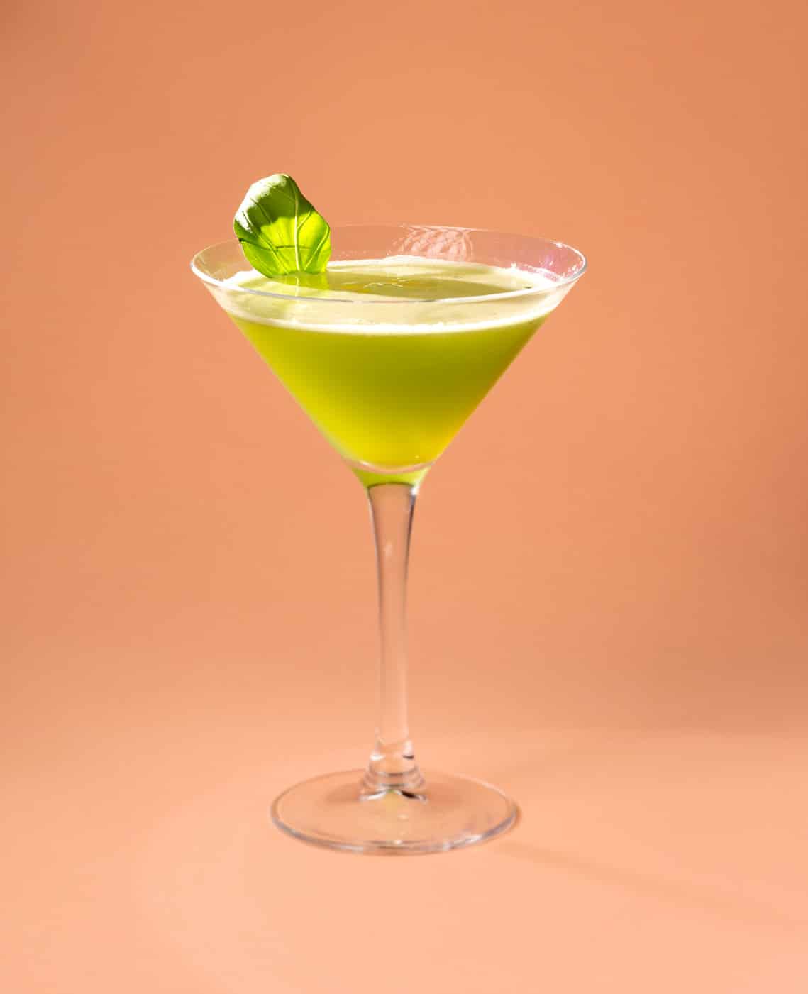 2. Mit zwei Basilikumblättern garnieren und servieren.