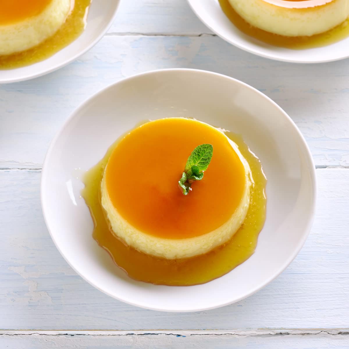 8. Man kann die Karamellcreme in den Schüsseln servieren oder umgekippt auf Teller geben.