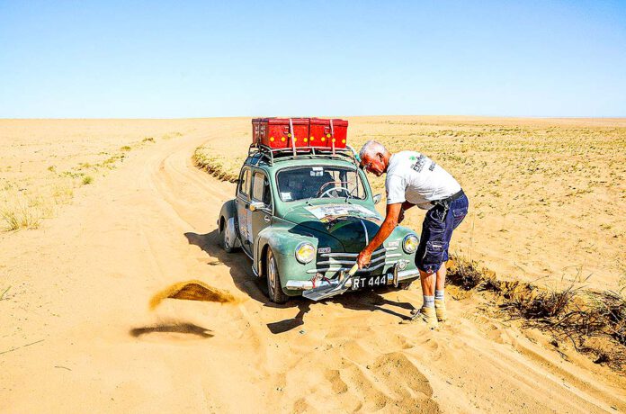 Haha! „Jung und erfahren“ scheint mir schon nicht zusammenzupassen! Ich schöpfe sicherlich einen großen Teil meiner Energie aus meiner langen Reiseerfahrung. Mit fünfzehn Jahren bewältigte ich ganz alleine mit meinem Moped die Strecke zwischen Nizza und Amsterdam. 1.500 km in drei Tagen, quasi meine Feuertaufe. Zwei Jahre später durchquerten wir zu zweit Italien, Jugoslawien und Griechenland mit dem Motorroller. Und seitdem hat das Reisen nie aufgehört … 2007 bin ich von Luxemburg in die Wüste Gobi gefahren, mit einem winzig kleinen Renault 4CV von 1959 mit dem Spitznamen „Die Kleine“. Eine schwierige Reise, aber eine echte Herausforderung: Würden wir (das Auto und ich) durchhalten? Diese Ungewissheit, die einen gewissen Adrenalinschub mit sich brachte, hielt mich in Form.