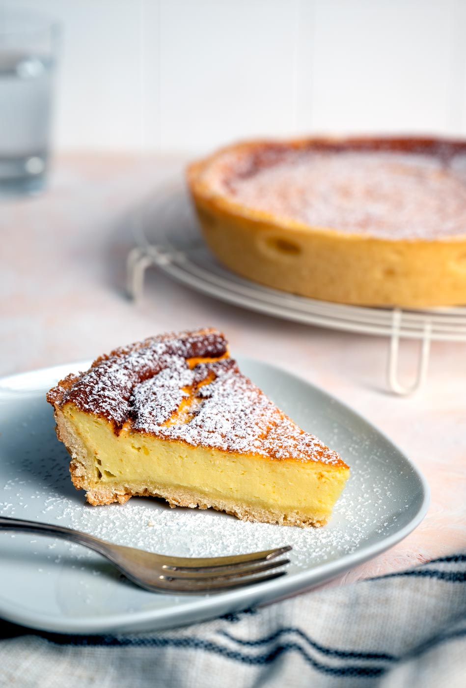 3. Roll out the pastry into the desired shape and place in a buttered tart tin. Prick the pastry several times with a fork and chill until ready to use.