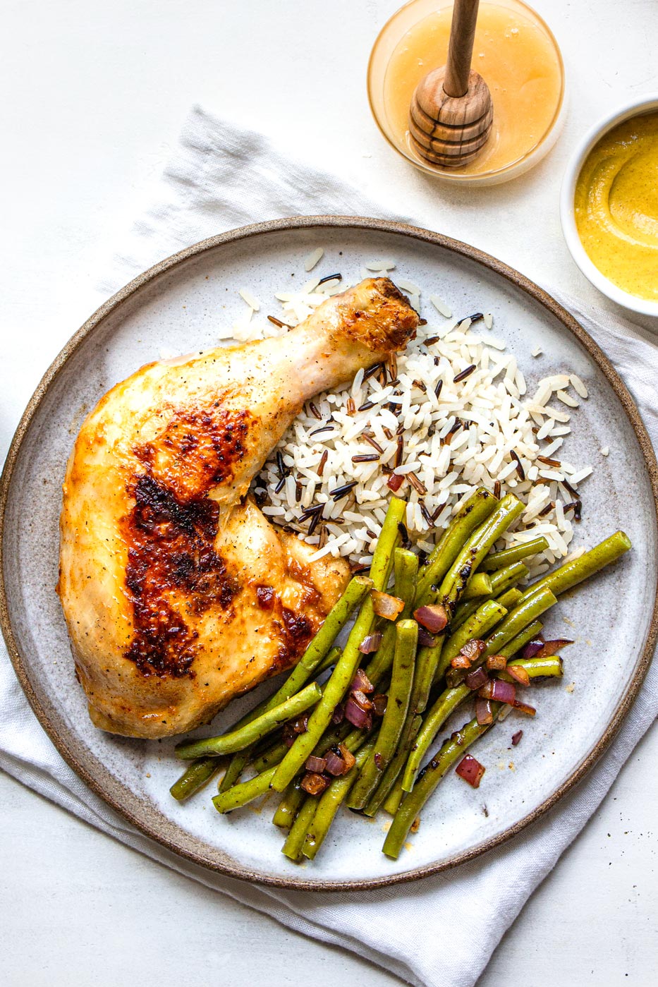 - Öl, Senf, Honig, Knoblauchpulver, Paprika, Salz und Pfeffer in einen großen, verschließbaren Behälter oder Zip-Beutel geben. Verquirlen, bis alles gut vermischt ist.