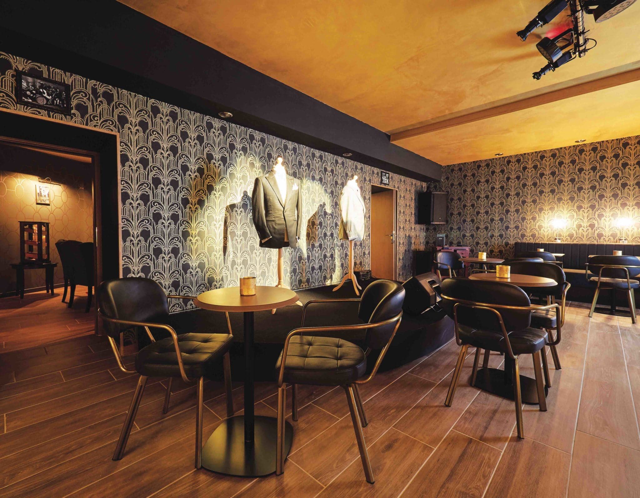 Neben dem Geschäft für maßgeschneiderte Damen- und Herrenanzüge gibt es dort auch ein kleines, aber feines Restaurant. Außerdem gibt es noch eine „geheime“ Bar im Untergeschoss mit feinsten Cocktails und Live-Musik unter der Leitung des Gründers und Bar-Managers George Sahinides.