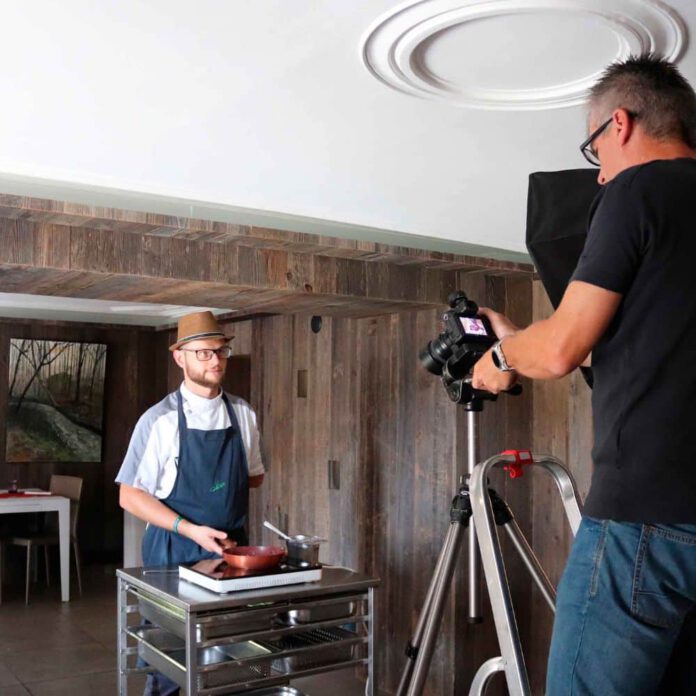 After a warm welcome and a little refreshment, we got down to work. Marion, journalist and editor of the magazine, plunged straight in a deep conversation, interviewing the chef. Meanwhile, the rest of the team scouted out the best place to shoot the pictures in the restaurant, set up the tripod and positioned the work surface correctly in front of the camera.