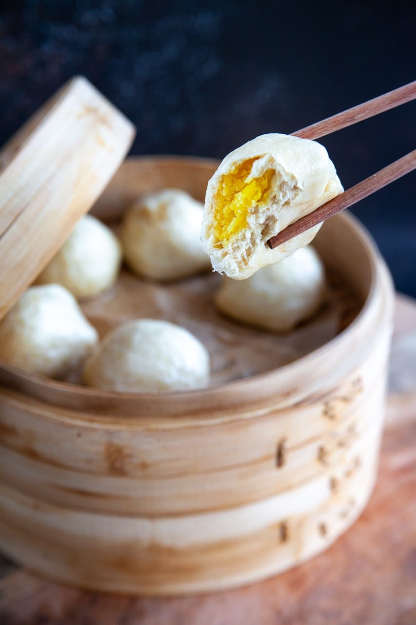 3. Place buns in a bamboo steamer lined with baking paper. Steam for 10 minutes.