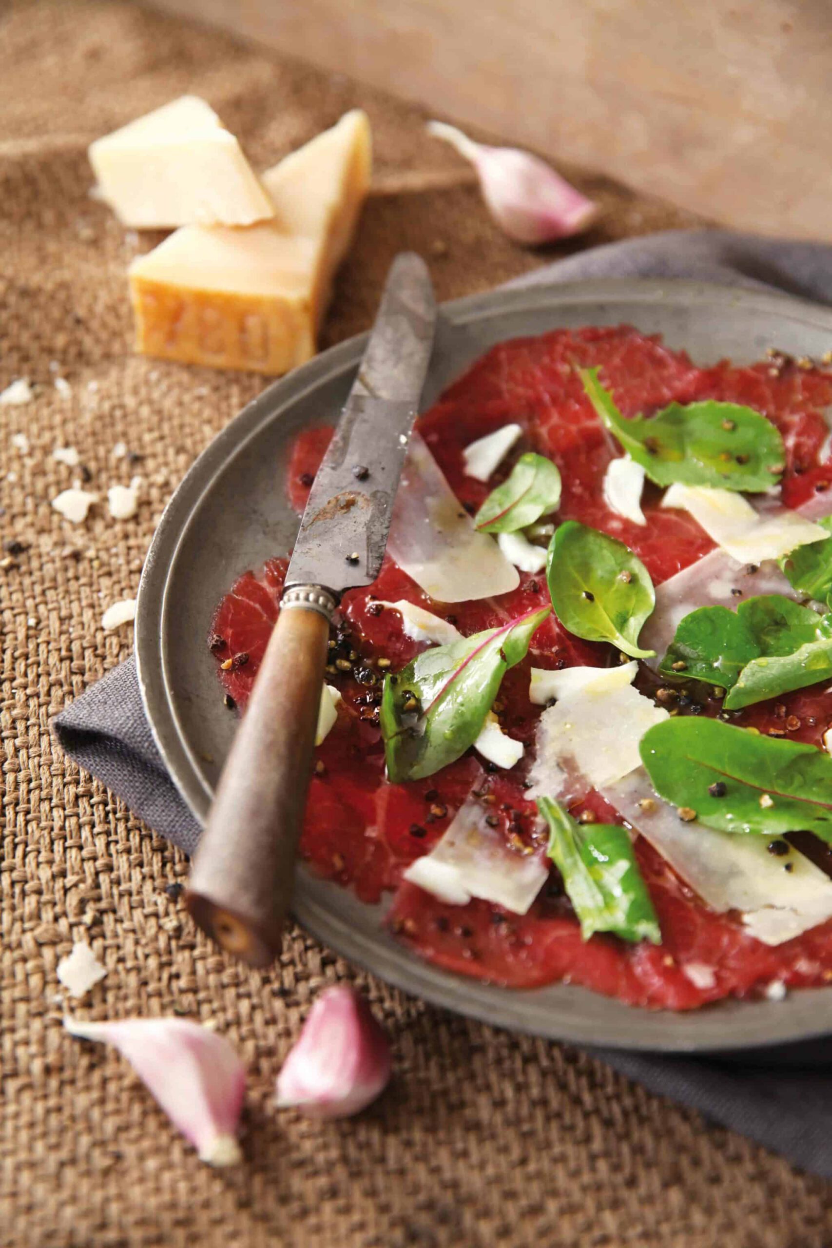 6. Sprinkle the carpaccio with a little aioli. Place the rest of the aioli in a small bowl on the table.