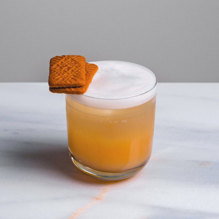 Filtrez dans un verre Rocks rempli de glace. Décorez avec un biscuit spéculoos.