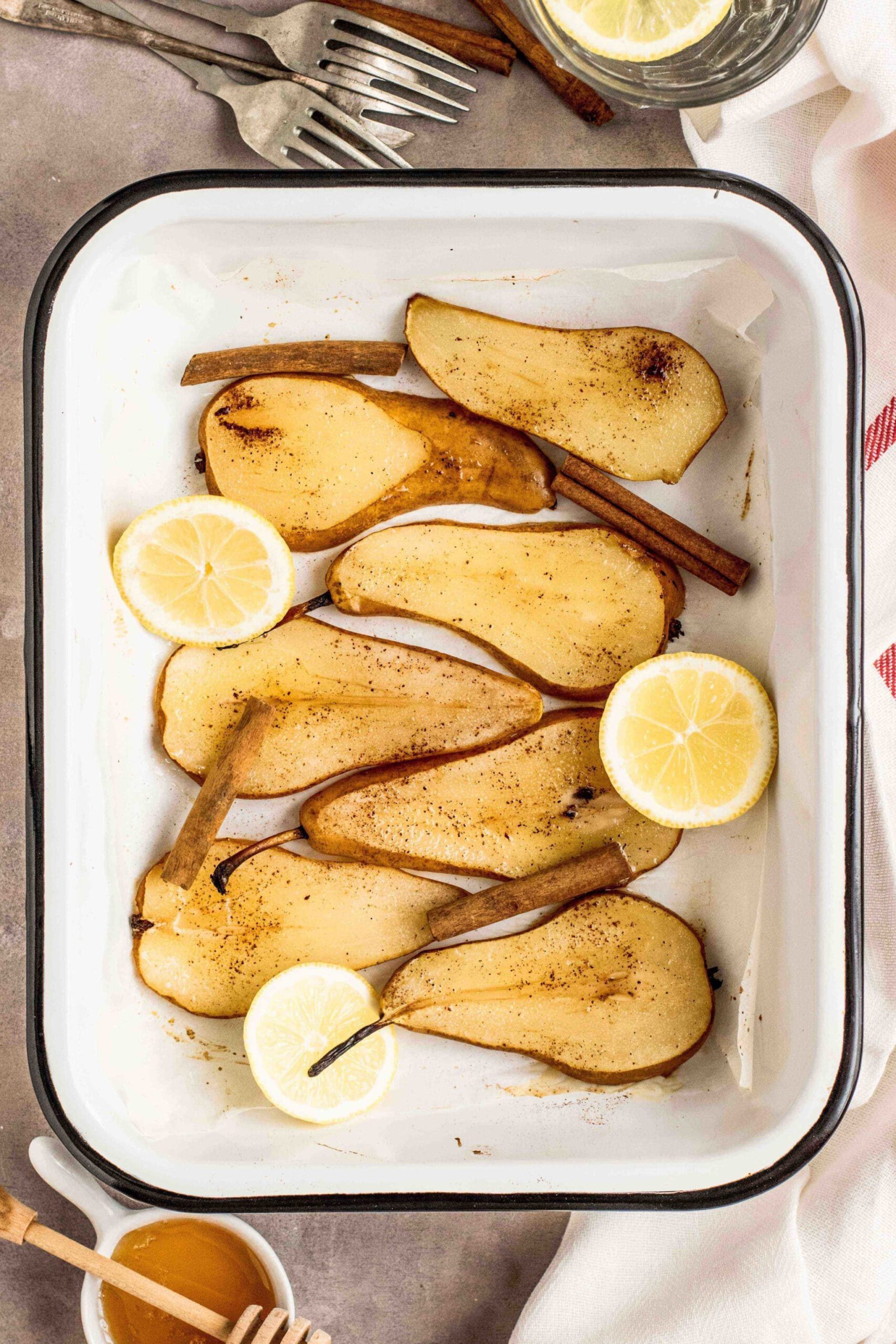 Pears contain folic acid, which is necessary for the production of serotonin, the happiness hormone. The high iron content of pears guards against anaemia. Pears are also high in vitamins and minerals, such as phosphor, which is good for your nerves. They also contain potassium, which is draining and helps to secret heavy metals and toxins that can be tied to the fruit.