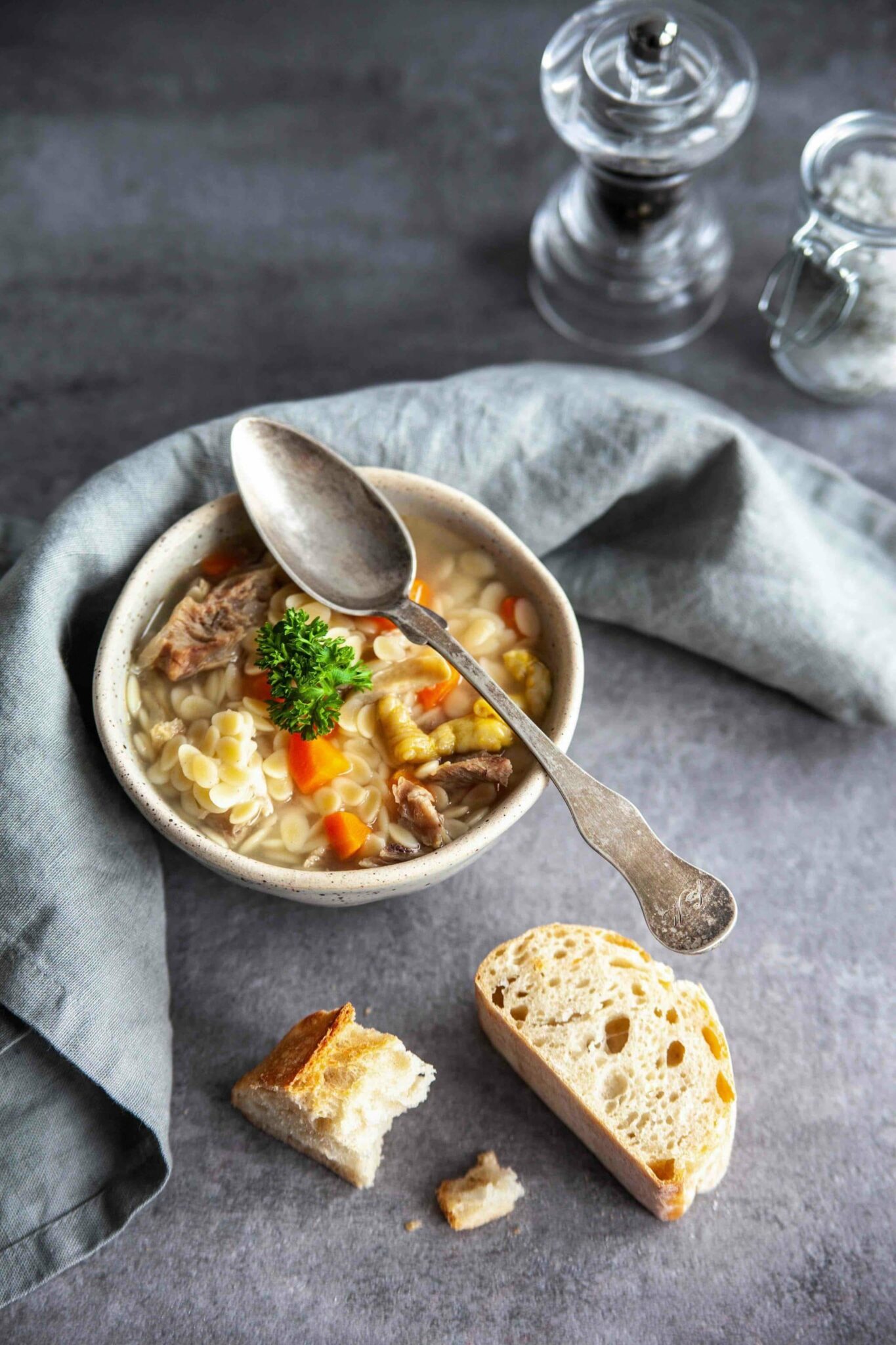 3. Add the orzo and carrot to the broth and simmer for another 15 minutes.