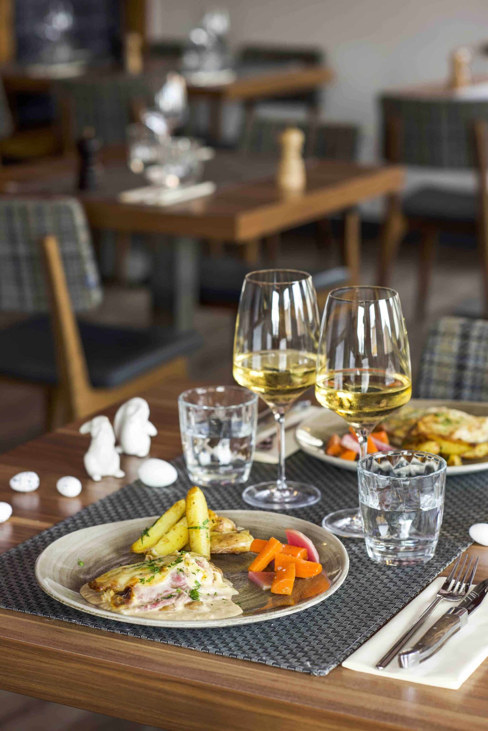 • 1.4 kg local veal roast16 slices of local cheese («roudebouf» from Fromagerie Schmalen, Berdorf)8 slices of cooked local ham (Salaison Meyer, Bascharage)40 g butter4 tbsp of oil4 carrots200 g onions4 garlic cloves200 ml dry Riesling200 ml fresh cream1 egg yolk12 potatoesVegetables of your choice