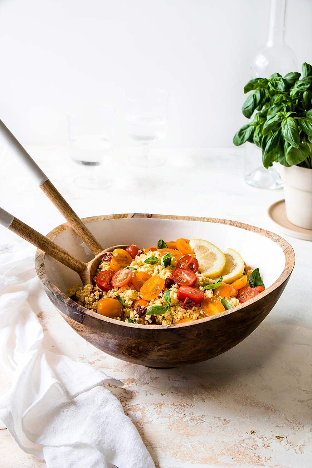 This recipe can also be made with classic couscous or pearl couscous if not on a gluten-free diet. Simply replace some of the water with the juice of a lemon during cooking.