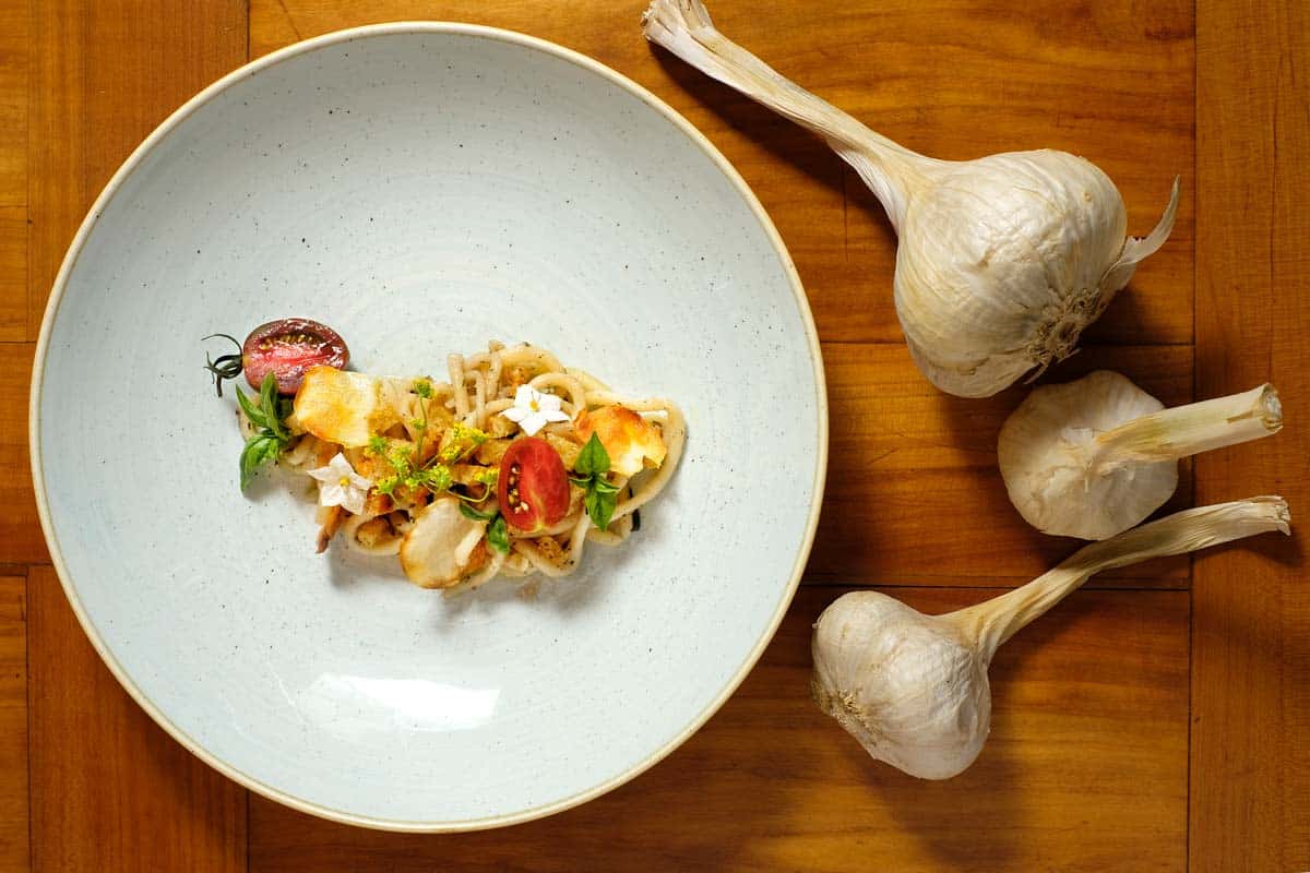 - Arrange the pici on plates, sprinkle with breadcrumbs and garnish with a sprig of fresh thyme or aromatic herbs.