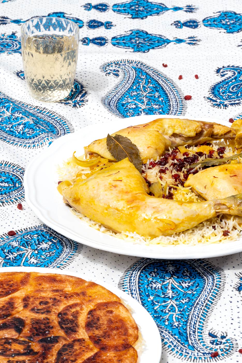 - Spread barberry mixture and chicken sauce from the pan on the rice and serve with the chicken.