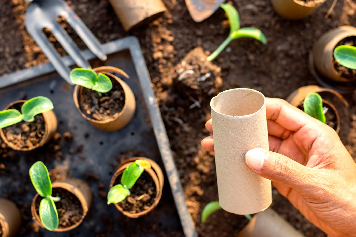 To grow plants indoors, we recommend buying soil specifically intended for seedlings from a gardening centre or DIY store. It needs to be sterile, water-retaining and not heavily fertilised. Garden soil won’t work as it clumps together and the warm, moist conditions on the windowsill will encourage the sprouts to grow faster than the plants. Re-use household packaging such as egg cartons, yoghurt pots or toilet roll tubes for containers. If you use yoghurt pots, don’t forget to poke holes in the bottoms to prevent waterlogging.
