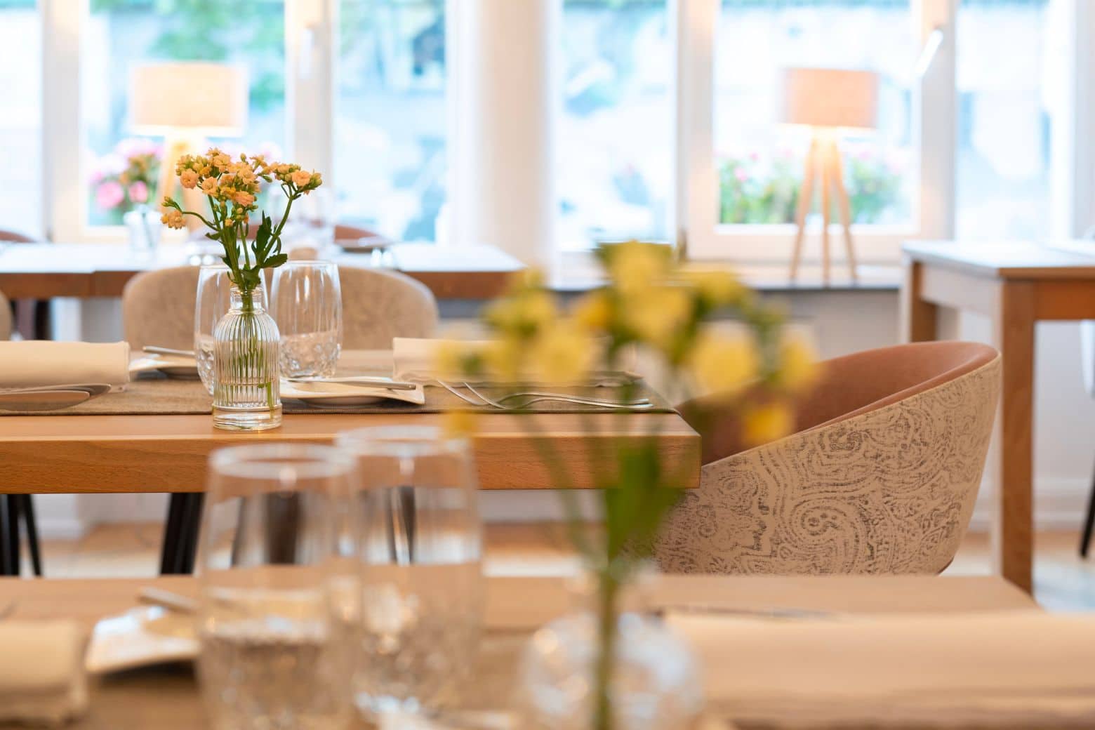 In 2012, the Sidoni family, who had until then worked in textiles, decided to take over the Boulevard Kennedy restaurant, which had previously been known as Cœur Grenadine, Chez Tanzi and Momenti. “We came from the textile industry, so all we brought with us was our business know-how,” says Estelle Sidoni, the eldest daughter of Serge Sidoni, the owner of the splendid townhouse in Esch. “So we called on Tony Tintinger — the former chef at restaurant Clairefontaine — to set us on the right track. In those early days, we served brasserie dishes like cordon bleu and vol-au-vents. These simple dishes were accompanied by amuse-bouches and attentive service,” continues Estelle, who runs La Maison Lefèvre with her father Serge and sister Deborah.