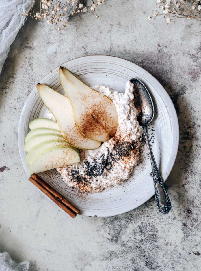 - Spoon the porridge onto a plate or into a bowl and garnish with the fruit, chia seeds and cinnamon.