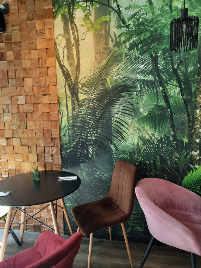I didn’t order any cocktails, although I’d heard good things about them. They are prepared by Manu Veiga (co-associate with the chef and a 3rd member of staff), who has worked in many places in the capital. I listened with envy to the shaker moving throughout lunch, and will be back one evening to try one of his signature cocktails. When I went to pay, I discovered the interior, which was fairly small but pleasant, with colourful decor, jungle-print wallpaper and a long bar where you could sit and watch the barman at work.