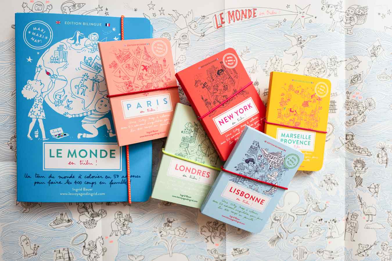 Ingrid Bauer, who shares her discoveries on her travel blog “Les voyages d’Ingrid,” and illustrator Alice Charbin came up with the idea for this collection of city guides for coloring, featuring an illustrated orientation map and 50 special addresses for families. The Miniminimaps include ideas for hotels, restaurants, artistic workshops, bucolic walks, and more.
