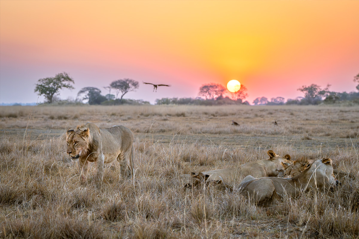 The powerful lion raises his head, clearly displeased by the unwanted observers who have come too close to him and his mate, disturbing their courtship ritual. Yellow teeth, sharp as knives, flash in the fading light – a promise of deadly force. A deep growl underscores the unmistakable threat. The piercing gaze of his amber eyes shatters any illusion of safety afforded by the safari vehicle; I feel small and vulnerable, acutely aware that in the face of this predator’s raw power, we would stand no chance. Our guide evidently shares this assessment and we cautiously retreat.