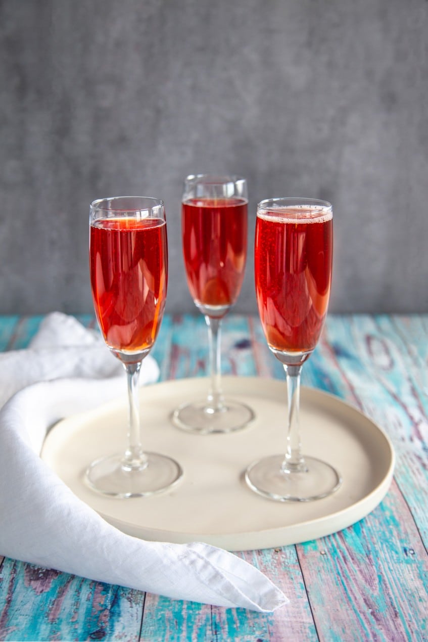 Nicht KategorisiertKir RoyalVon MAFFEI Maurizio - 19/09/2019084 Kir Royal Print Serves: 1 Sektglas Nutrition facts: 200 calories 20 grams fat Rating: 5.0/5 ( 1 voted )Ingredients1-2 cl Crème de Cassis (Johannisbeerlikör) eiskalter Champagner oder Crémant Instructions1. Sektgläser bereit stellen.2. 1-2 cl Crème de Cassis in die Gläser füllen.3. Mit eiskaltem Champagner oder Crémant aufgießen.