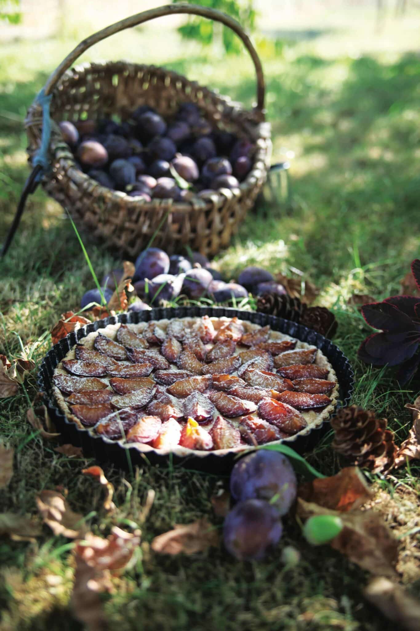 5. Die Zwetschgenviertel auf dem Teigboden verteilen, bis alles bedeckt ist. Tarte für weitere 30 Minuten backen.