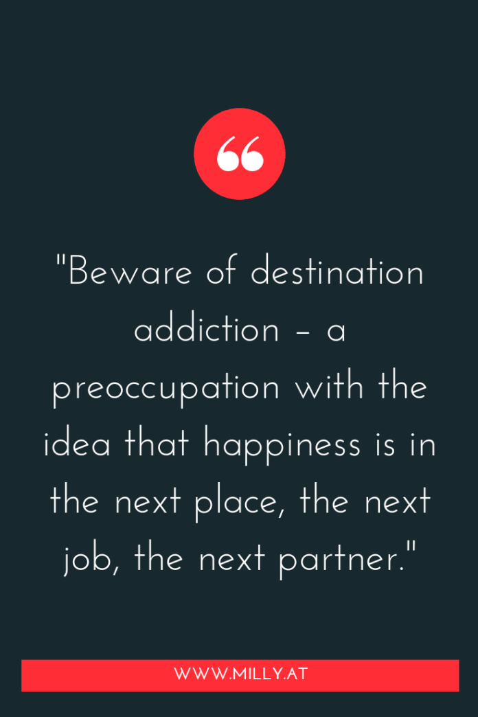 The other day I was browsing Instagram (Instagram is my happy place, #dontjudge), and a post caught my eye: „Beware of destination addiction — a preoccupation with the idea that happiness is in the next place, the next job, the next partner. Until you give up the idea that happiness is somewhere else, it will never be where you are.” This resonated with me so strongly, that I haven’t been able to get it out of my head.