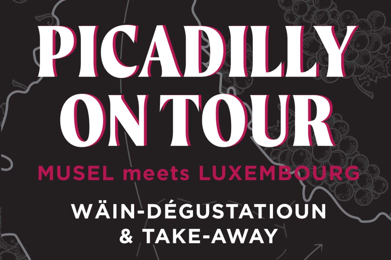 Ganz nach dem Motto „können die Besucher nicht zum Picadilly, dann kommt der Picadilly zu Ihnen“, laden die lokalen Winzer der Domaine Viticole Cep d’Or und Domaines Vinsmoselle gleich an drei Wochenenden von Ende Juli, bis in den August hinein zur Verkostung ein. In Zusammenarbeit mit 17 Gemeinden durch das ganze Land verteilt, bietet der „Picadilly Bus“ den Besuchern die Möglichkeit den traditionellen Picadilly, den Picadilly Zero (ohne Alkohol) sowie auserlesene luxemburger Weine und Crémants in angenehmer Atmosphäre zu genießen und vor Ort zu kaufen. Für den kleinen Hunger versorgt Foodriders die Gäste mit ihrem Foodtruck.