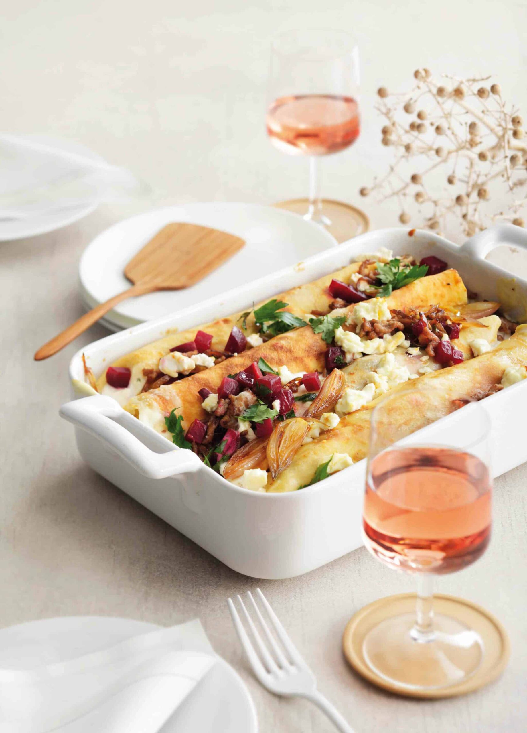 Crêpes farcies à  la viande hachée, à  la betterave et à  la feta