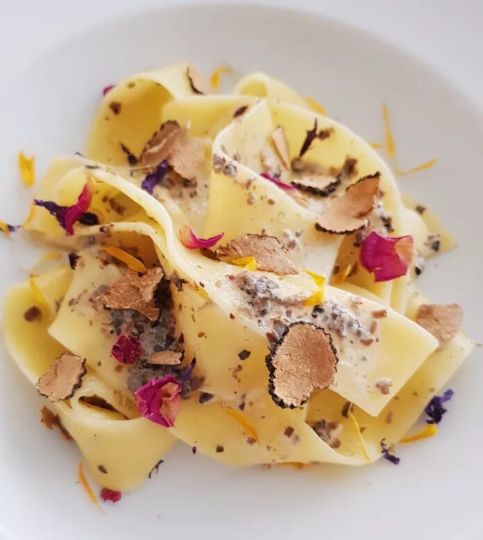Vous pouvez soit fabriquer les papardelles vous-même, soit les acheter. Faites cuire les pâtes selon les indications. Pendant qu'elles bouillent, préparez la sauce. Faites chauffer la crème, salez et poivrez et ajoutez le parmesan. Portez rapidement à ébullition. Ajoutez ensuite la pâte de truffe. Avant de servir, donnez aux pâtes un petit coup de pouce dans la sauce !