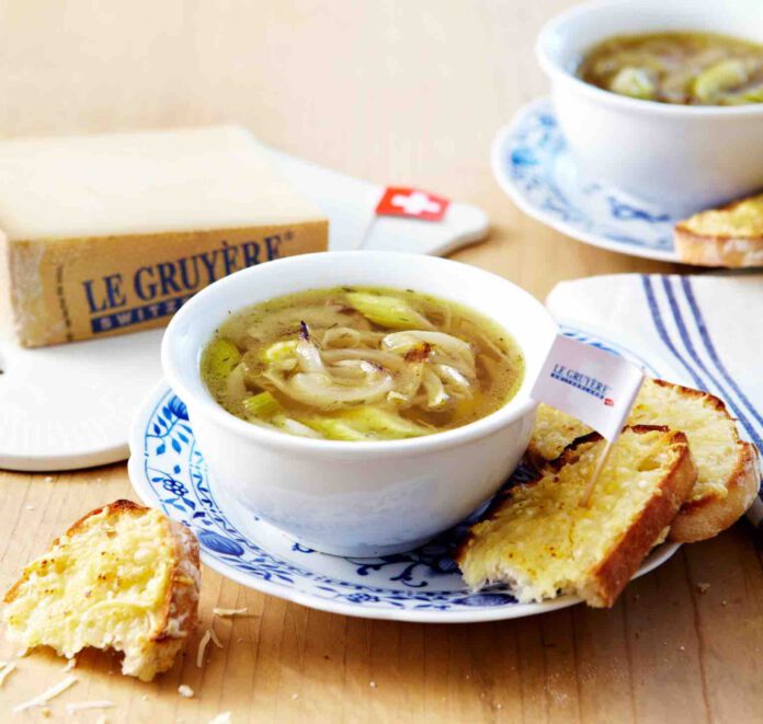 5. Préchauffer le gril du four. Bruschetta au Gruyère AOP: parsemer les tranches de Gruyère AOP râpé. Les laisser gratiner pendant quelques minutes. Réserver.