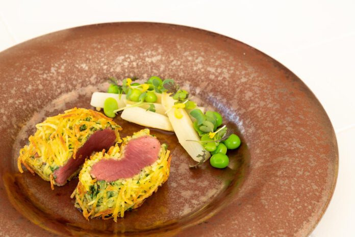 - Disposer deux morceaux sur chacune des quatre assiettes chaudes.