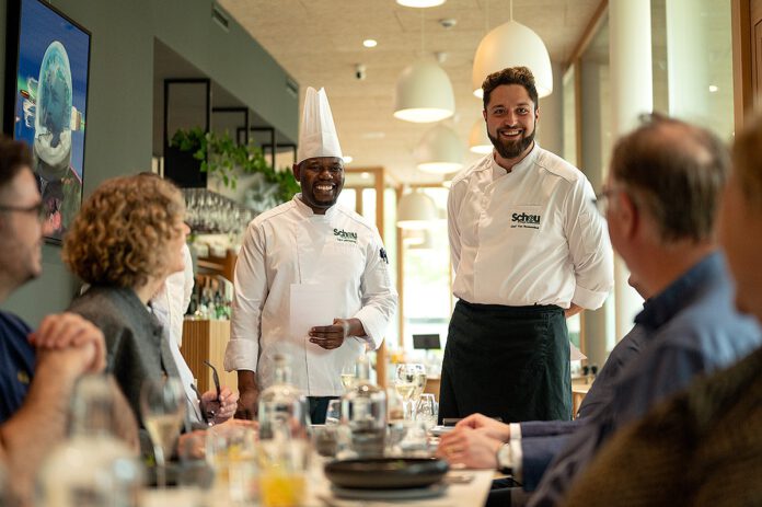Les chefs Prosper et Benjamin forment l’équipe de cuisine dynamique de la Park Brasserie. Malgré leurs différences de formation et de style de cuisine, ils se complètent à merveille et contribuent ensemble à l’identité culinaire unique du restaurant. « Il n’y a pas de hiérarchie dans la cuisine », explique Di Gregorio. « Nos deux chefs travaillent ensemble sur un pied d’égalité.